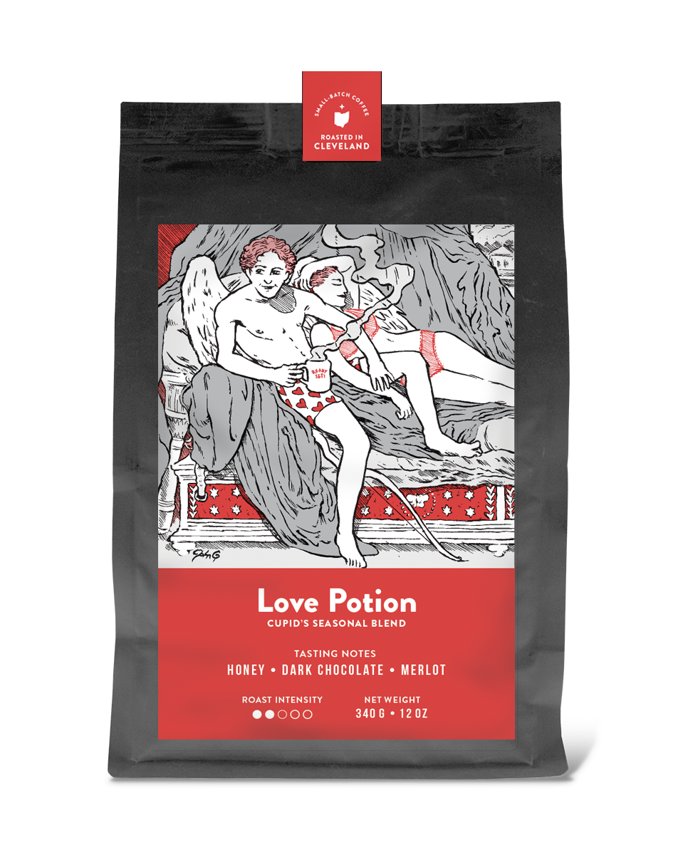 Love Potion is a light roast designed to charm at first sip. Sweet, aromatic, and softly expressive, it opens with notes of honey and delicate florals, followed by dark chocolate depth and a wine like finish that lingers just long enough to leave an impression. A mix of our Mexican, Ethiopian, and Colombian beans, this light blend is easy to enjoy alone or with that special someone.